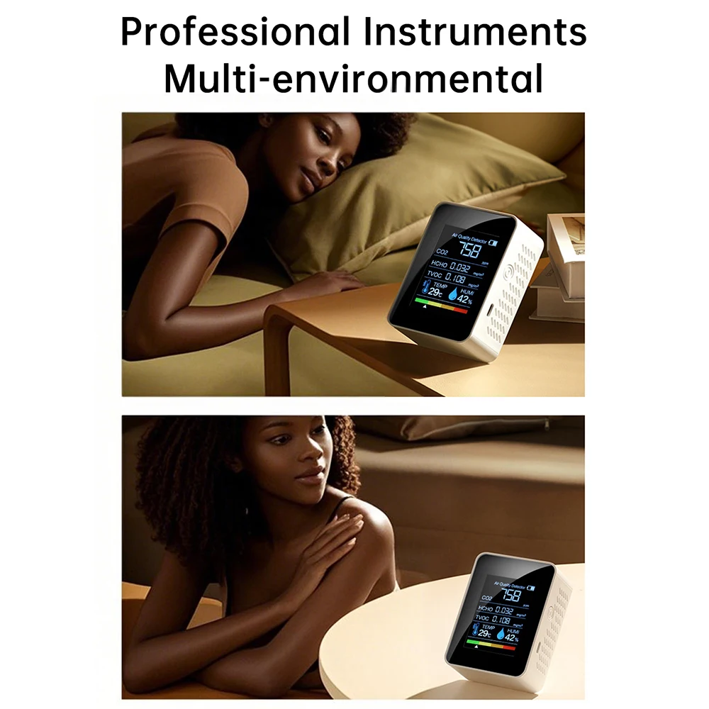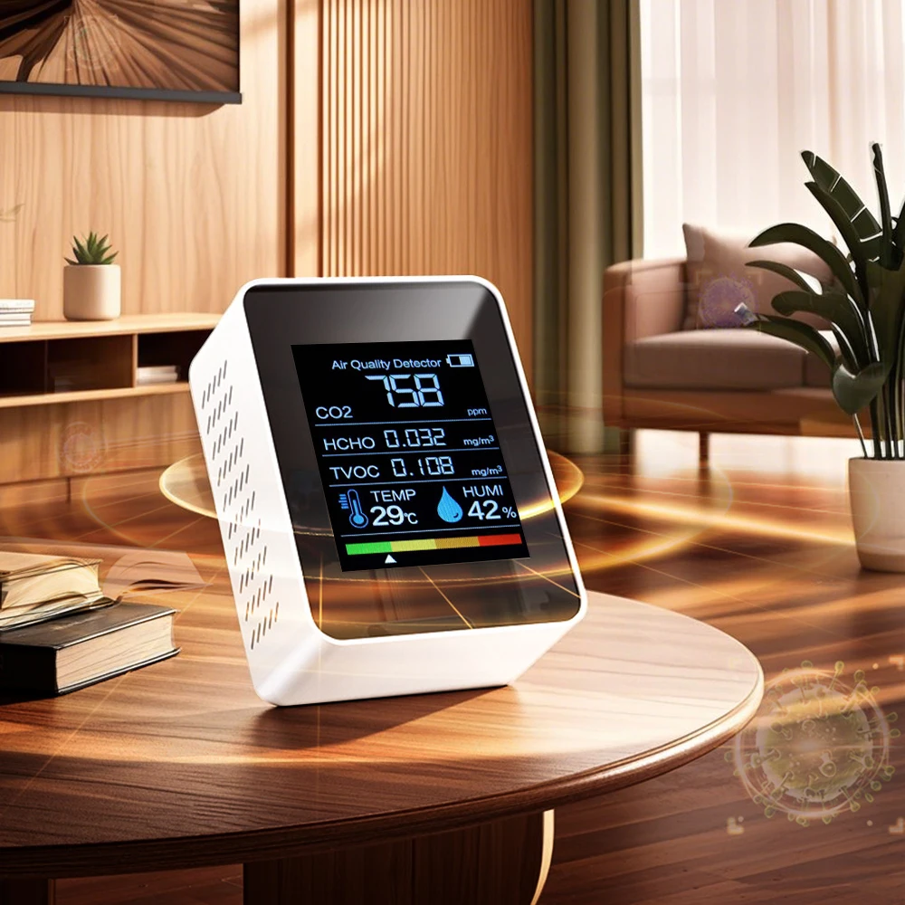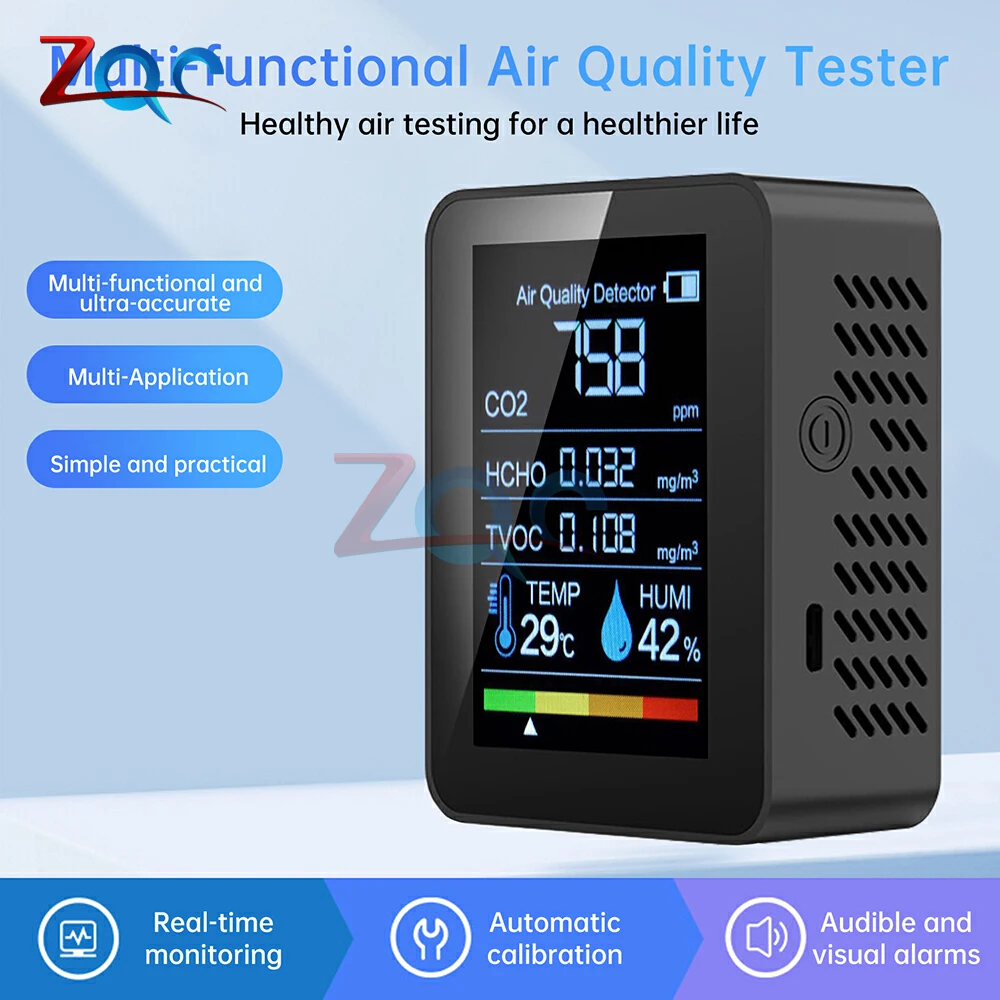 5 in1 Air Quality Monitor Multifunctional CO2 Meter Digital Temperature Humidity Tester Carbon Dioxide TVOC HCHO Detector