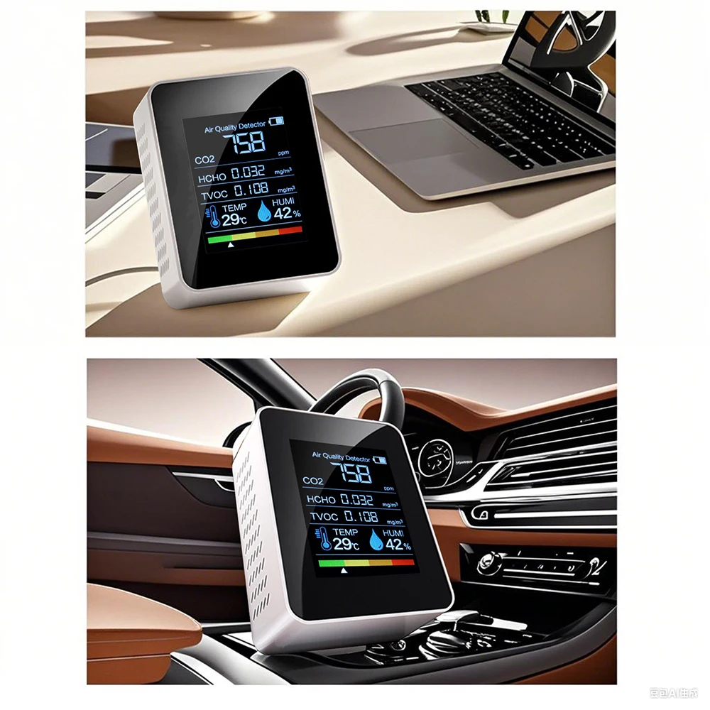 4. Sound and light alarm: When the air quality exceeds the safety range, the device automatically triggers sound and light alarms to remind the user to take measures in time.